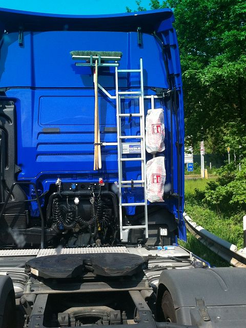 verzinkt und nachträglich in grau beschichtet, mit umlaufendem Edelstahlhandlauf